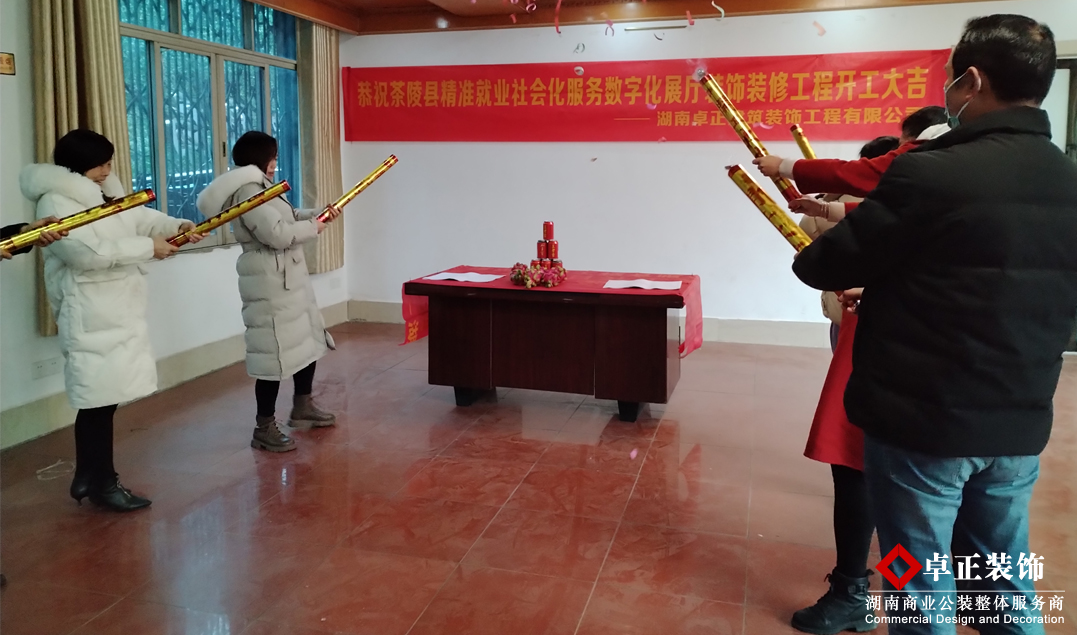 該數(shù)字展廳裝修工程項(xiàng)目是湖南卓正裝飾公司為茶林縣精準(zhǔn)就業(yè)社會(huì)化服務(wù)數(shù)字化展廳空間從設(shè)計(jì)、消防、施工一站式整裝工程,根據(jù)中國(guó)傳統(tǒng)文化選擇黃道吉日已于日前開(kāi)工,值此春風(fēng)拂柳,萬(wàn)物復(fù)蘇的良辰美景之時(shí),湖南卓正裝飾感謝茶林縣精準(zhǔn)就業(yè)社會(huì)化服務(wù)展廳公司對(duì)我們的信任支持,并熱烈祝賀茶林縣精準(zhǔn)就業(yè)社會(huì)化服務(wù)數(shù)字化展廳裝飾裝修工程開(kāi)工大吉,預(yù)祝項(xiàng)目工程完滿峻工!